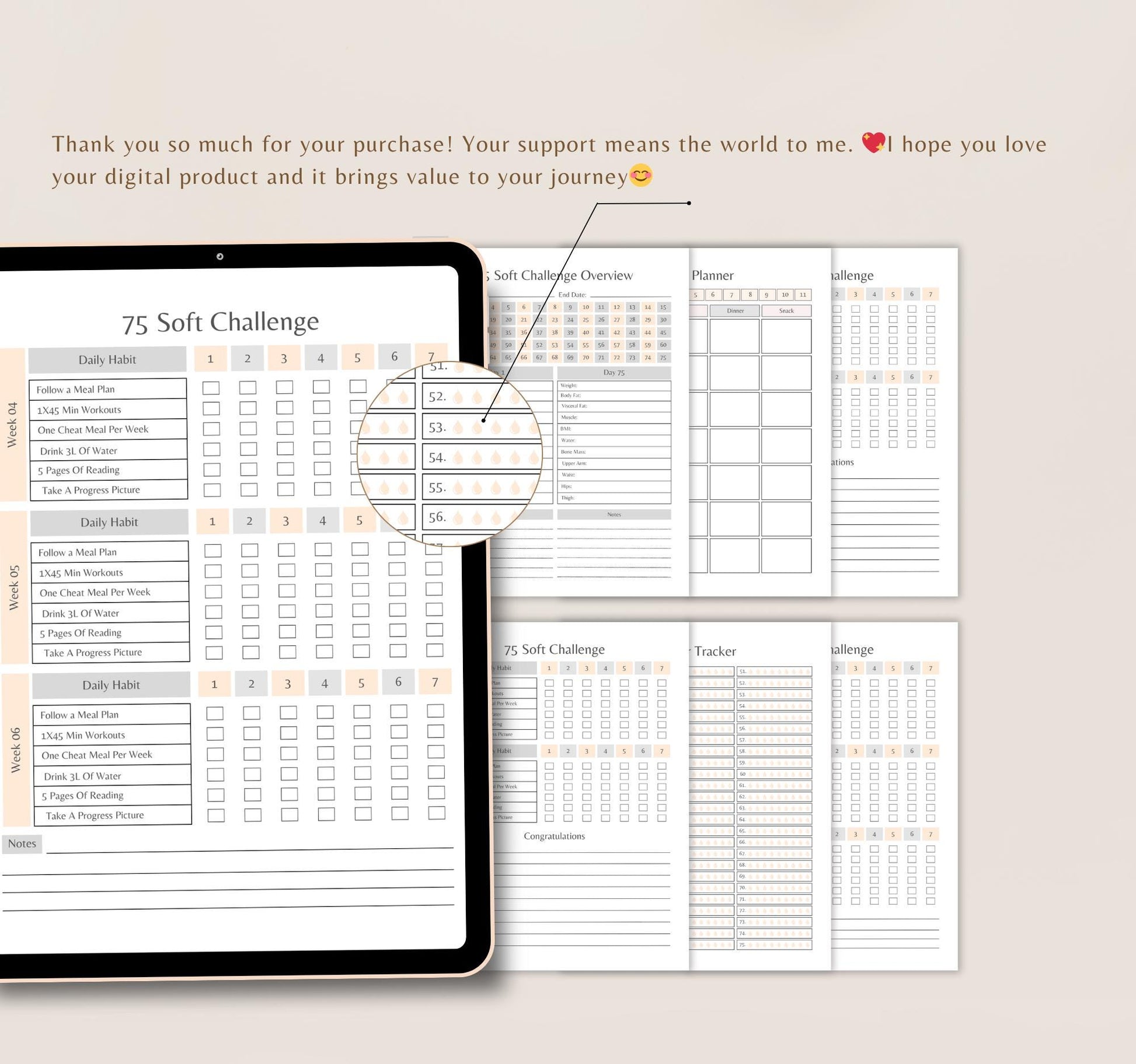 - Challenge-Focused Layout: Tailored specifically for the 75 Soft Challenge.