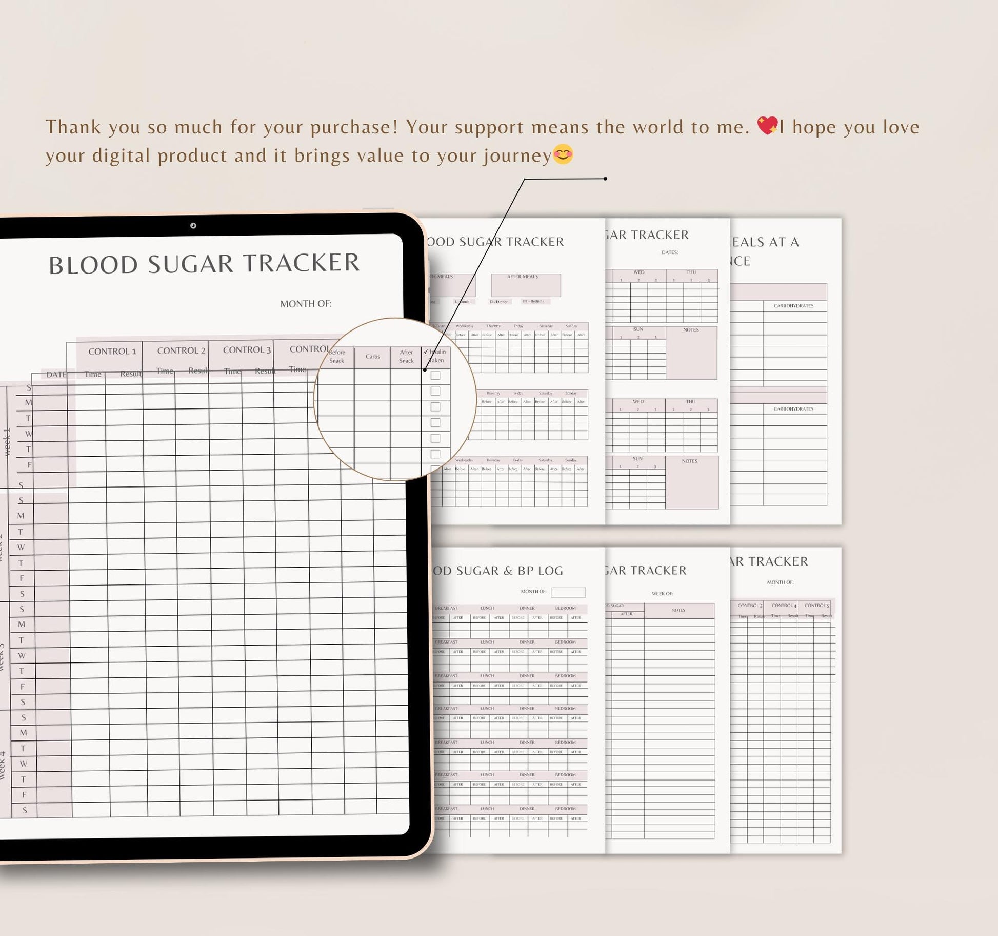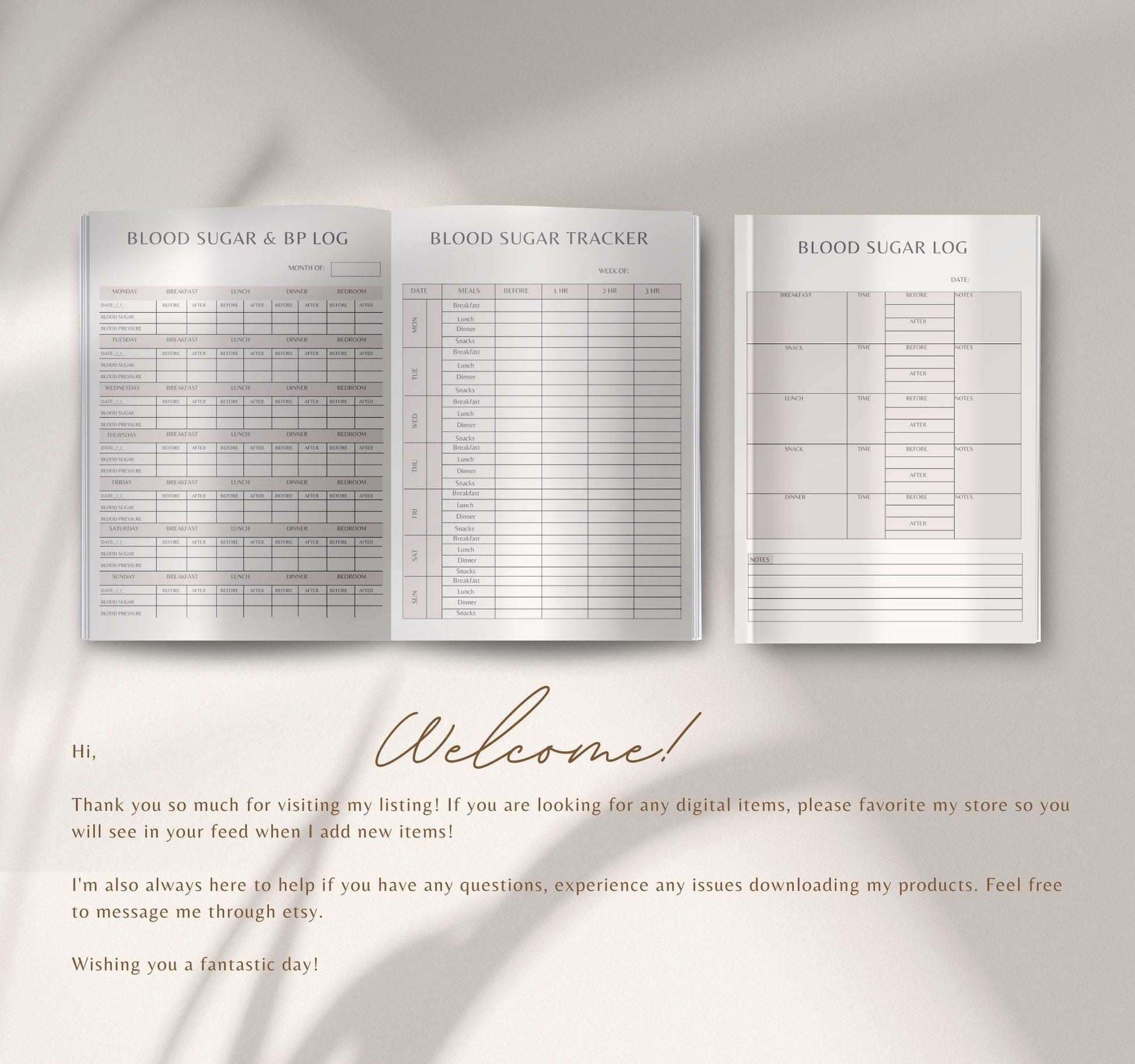 Blood Sugar Planner | Diabetes Logbook, Glucose Tracker & Health Journal PDF Download