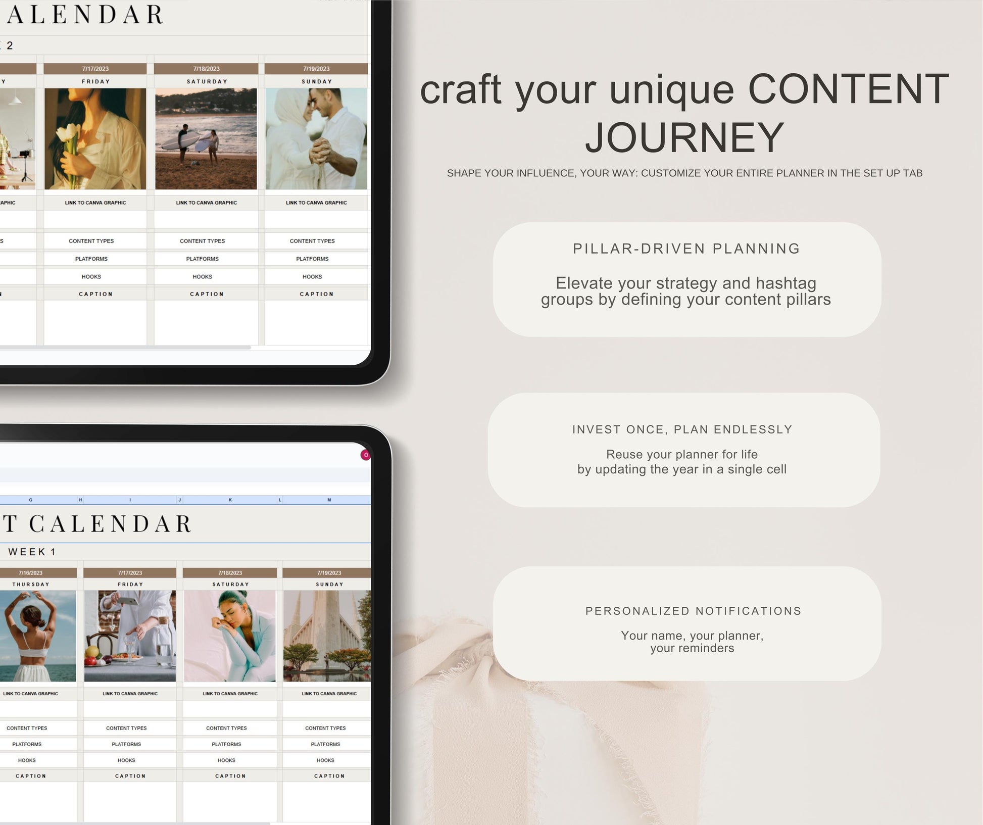- Stay Organized & Professional: Centralize all posts, hashtags, visuals, and notes in one clean spreadsheet.