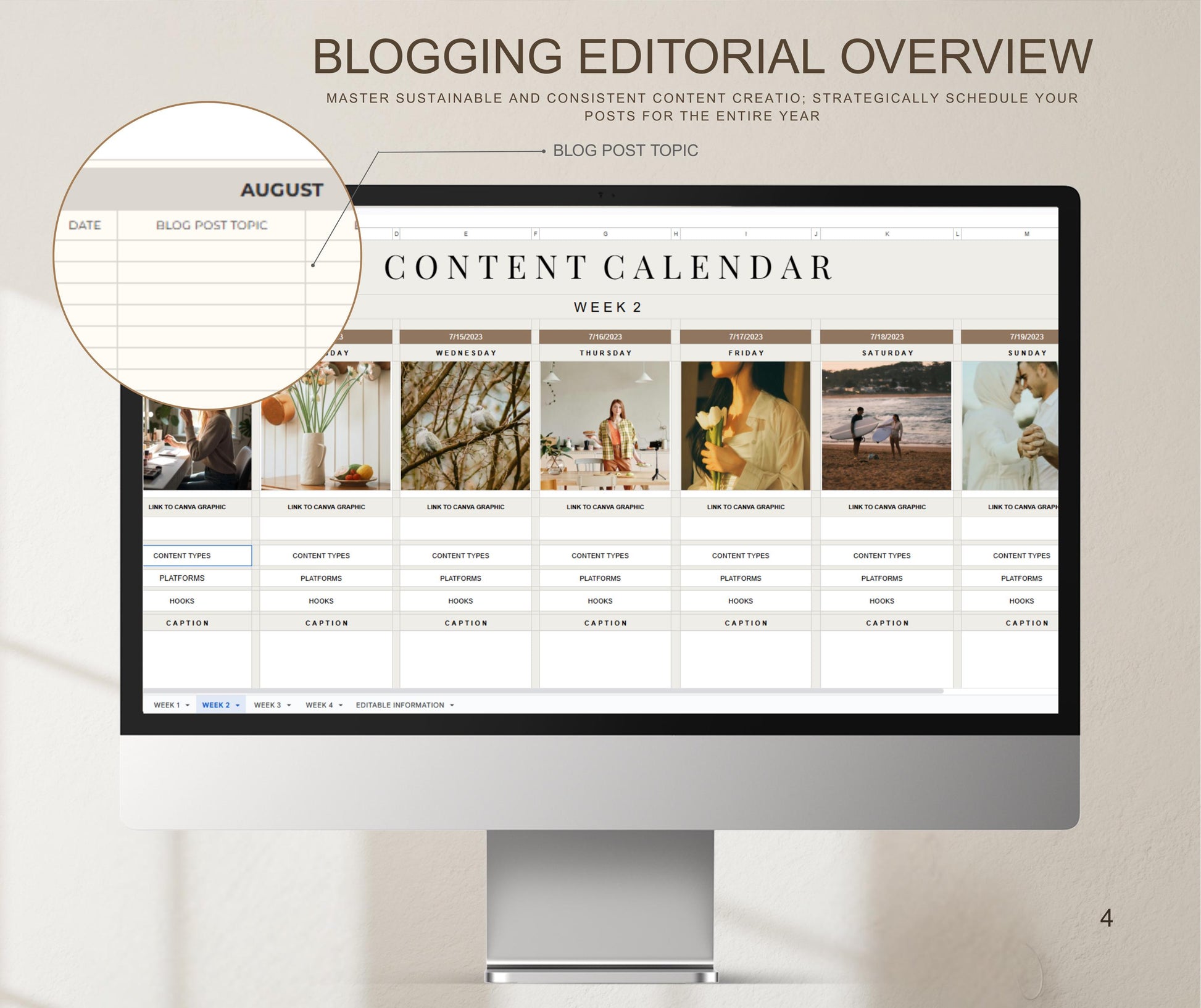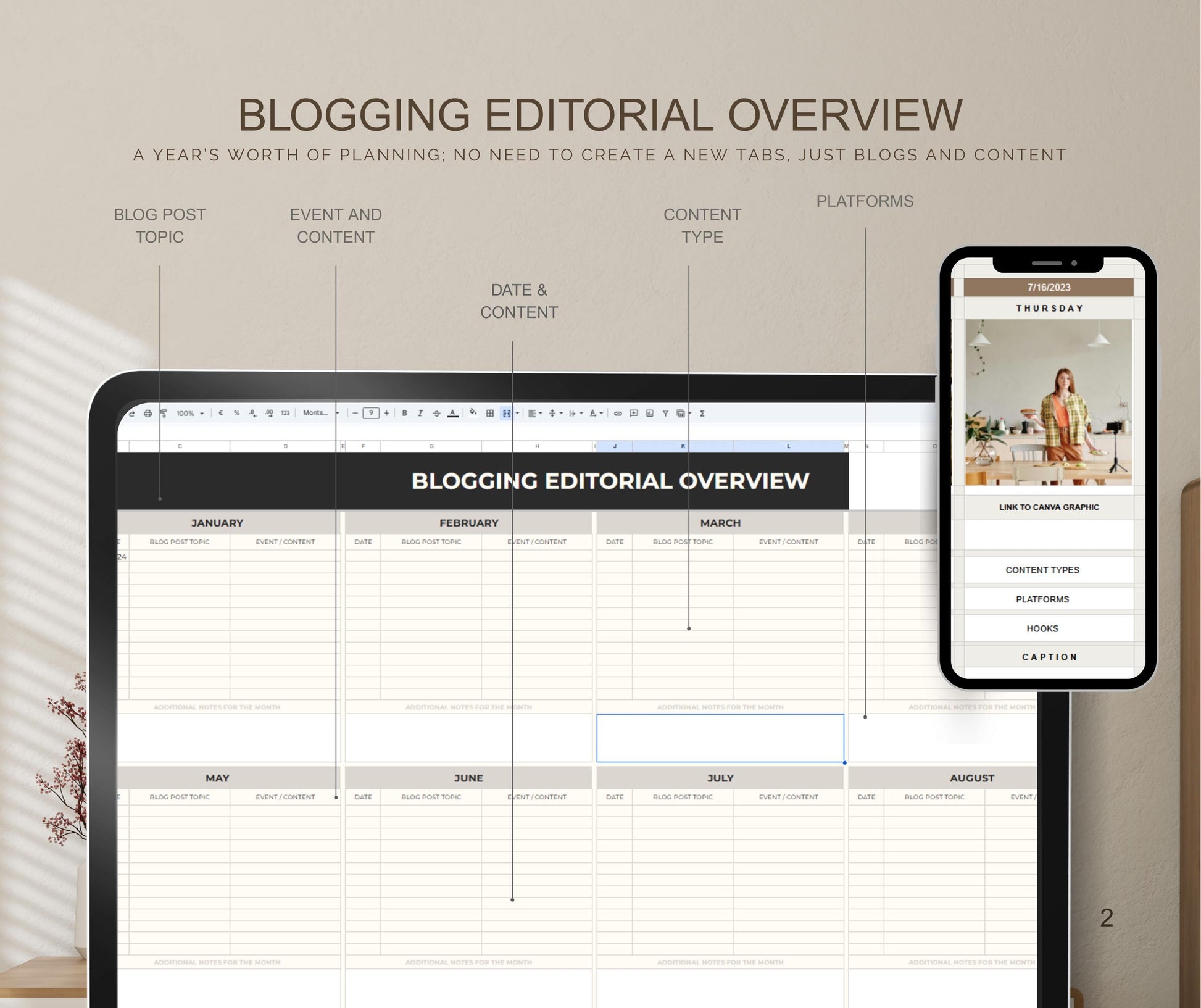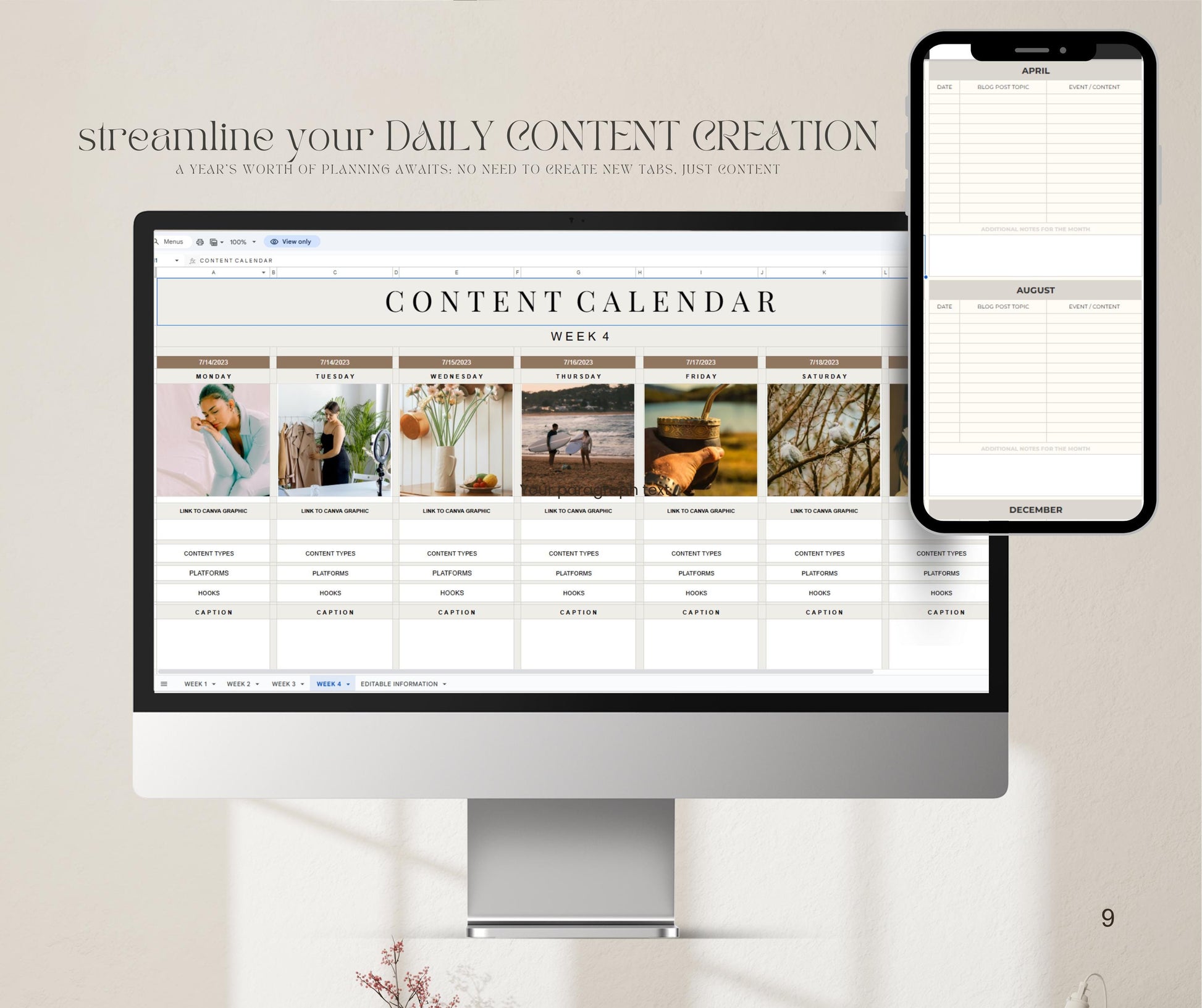 Content Calendar Spreadsheet | Social Media Planner | Editable Google Sheets & Excel Template