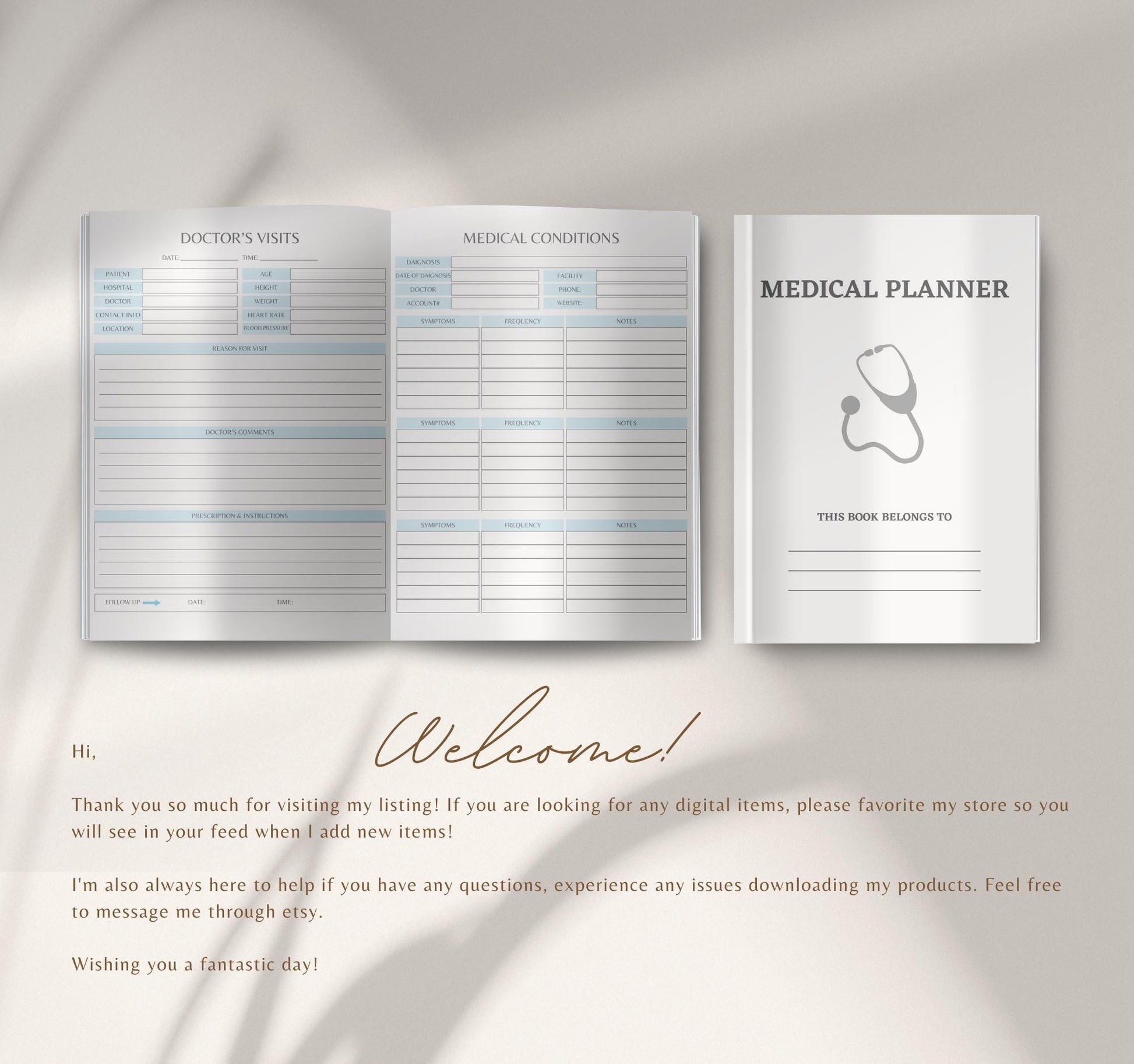 Digital Medical Planner | Health Tracker, Medication Log & Doctor Visit Organizer | Symptom Journal PDF Download