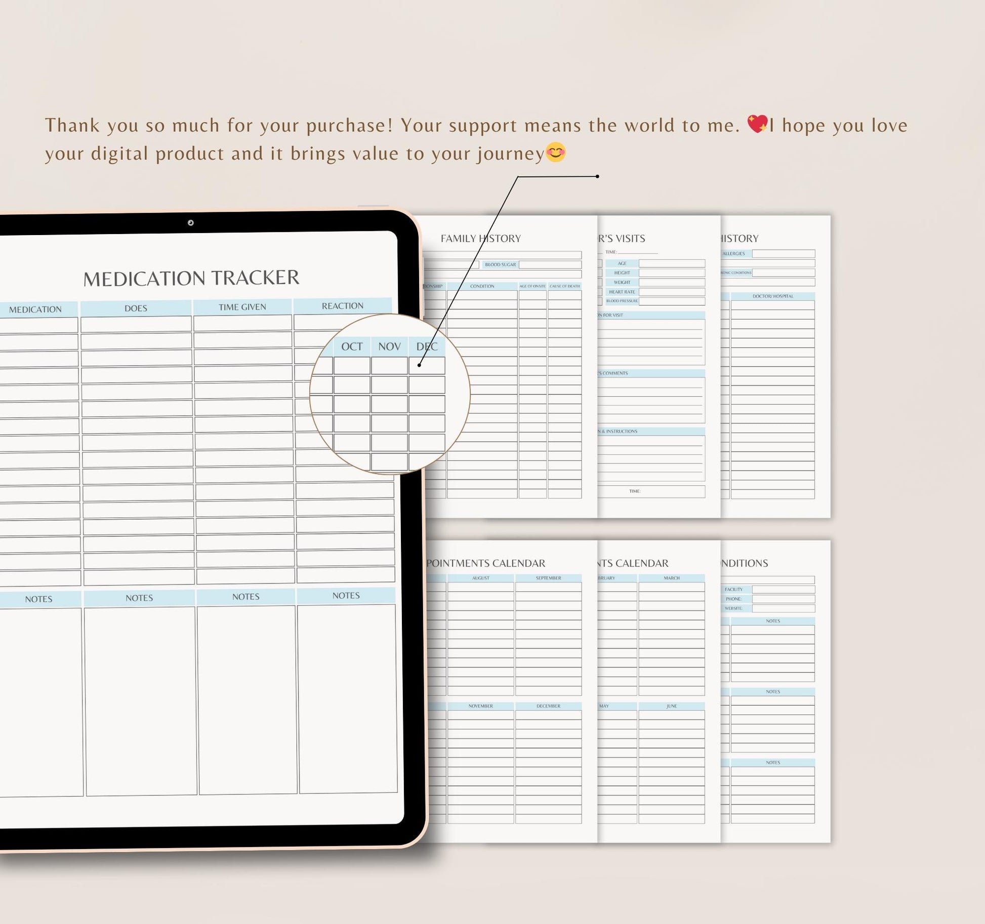Stay organized and take control of your health with the Digital Medical Planner — a complete system to track medications, symptoms, doctor visits, and overall wellness. Whether you’re managing your own health, caring for a loved one, or simply wanting a clearer medical record, this digital PDF planner keeps all your vital information in one place.