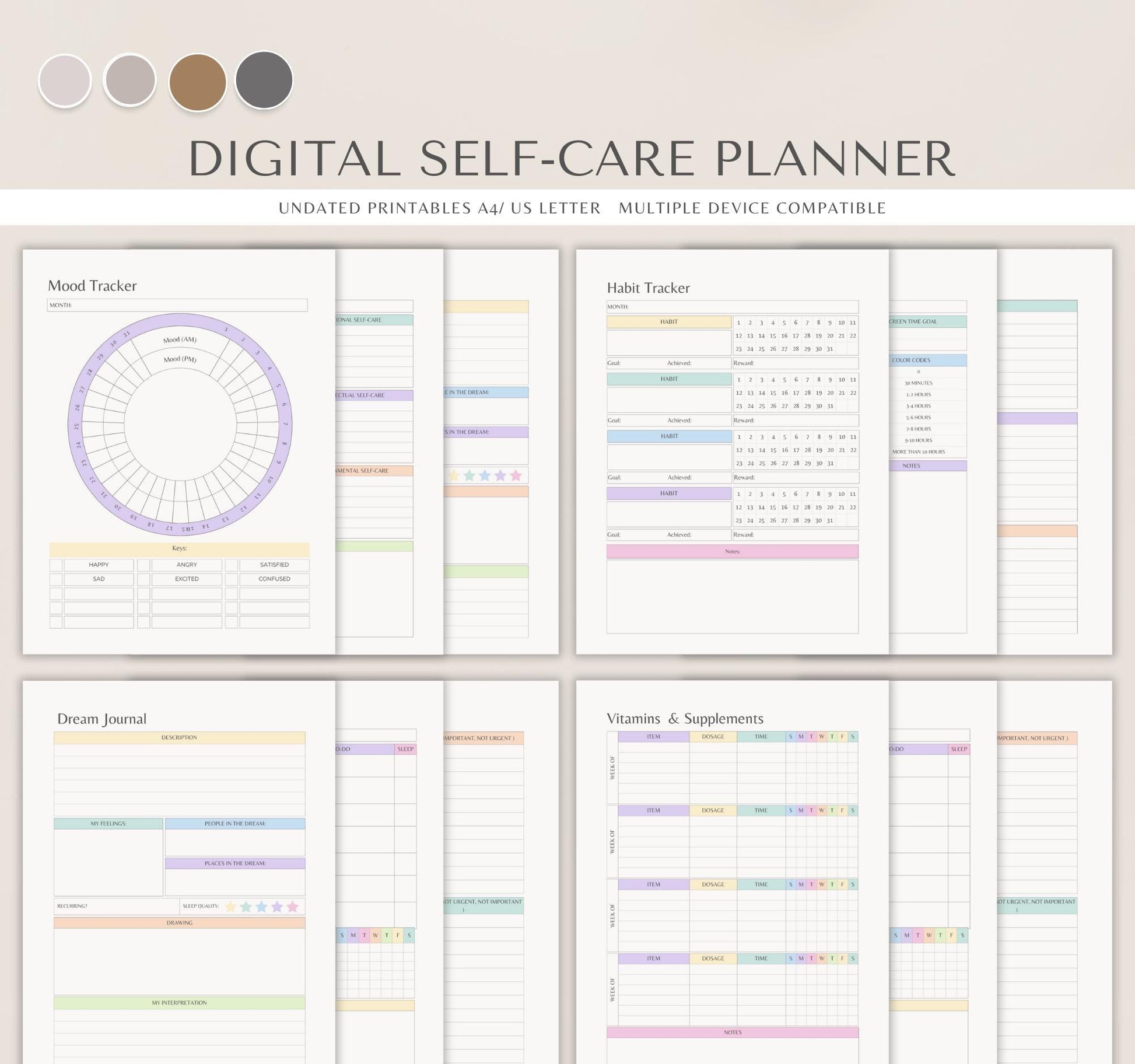 Digital Self-Care Planner | Wellness Journal, Habit Tracker & Mental Health Organizer PDF Download