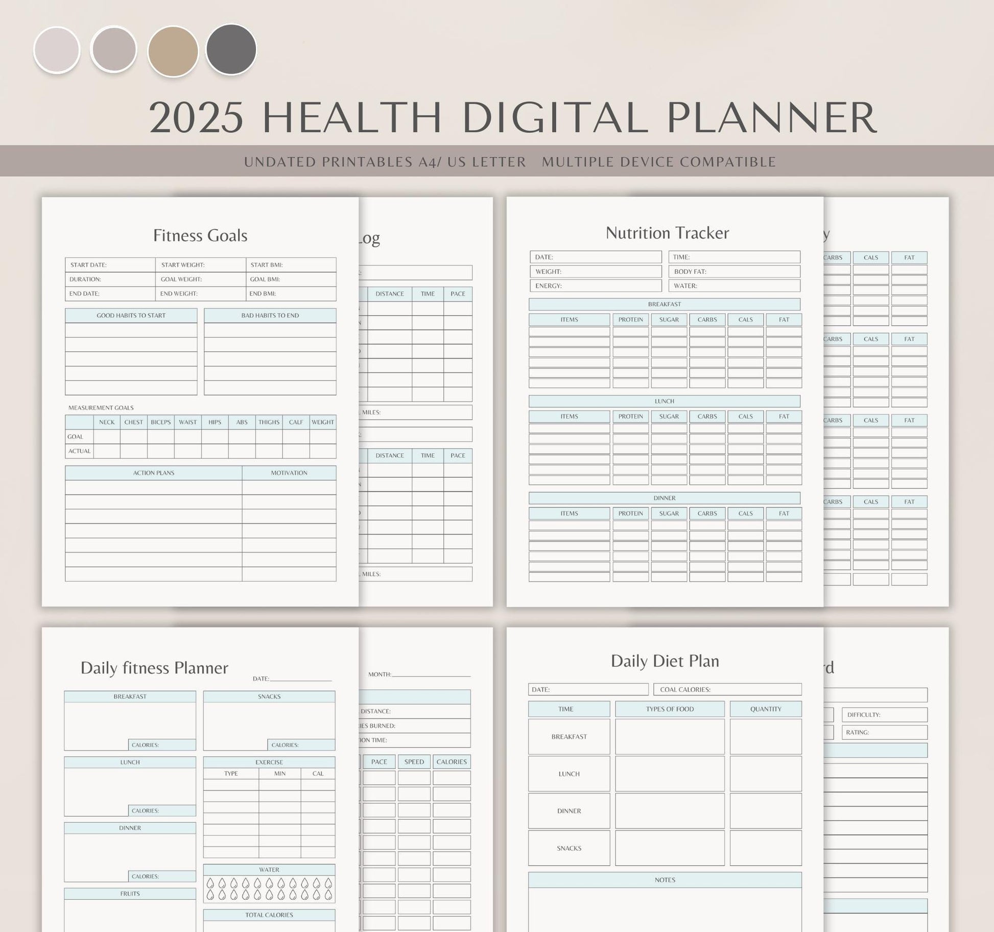 Health Digital Planner | Wellness Journal, Fitness & Meal Tracker, Self-Care & Medical Log PDF Download