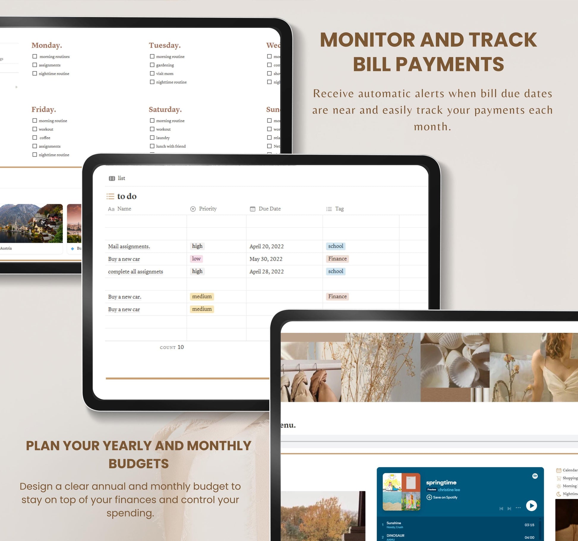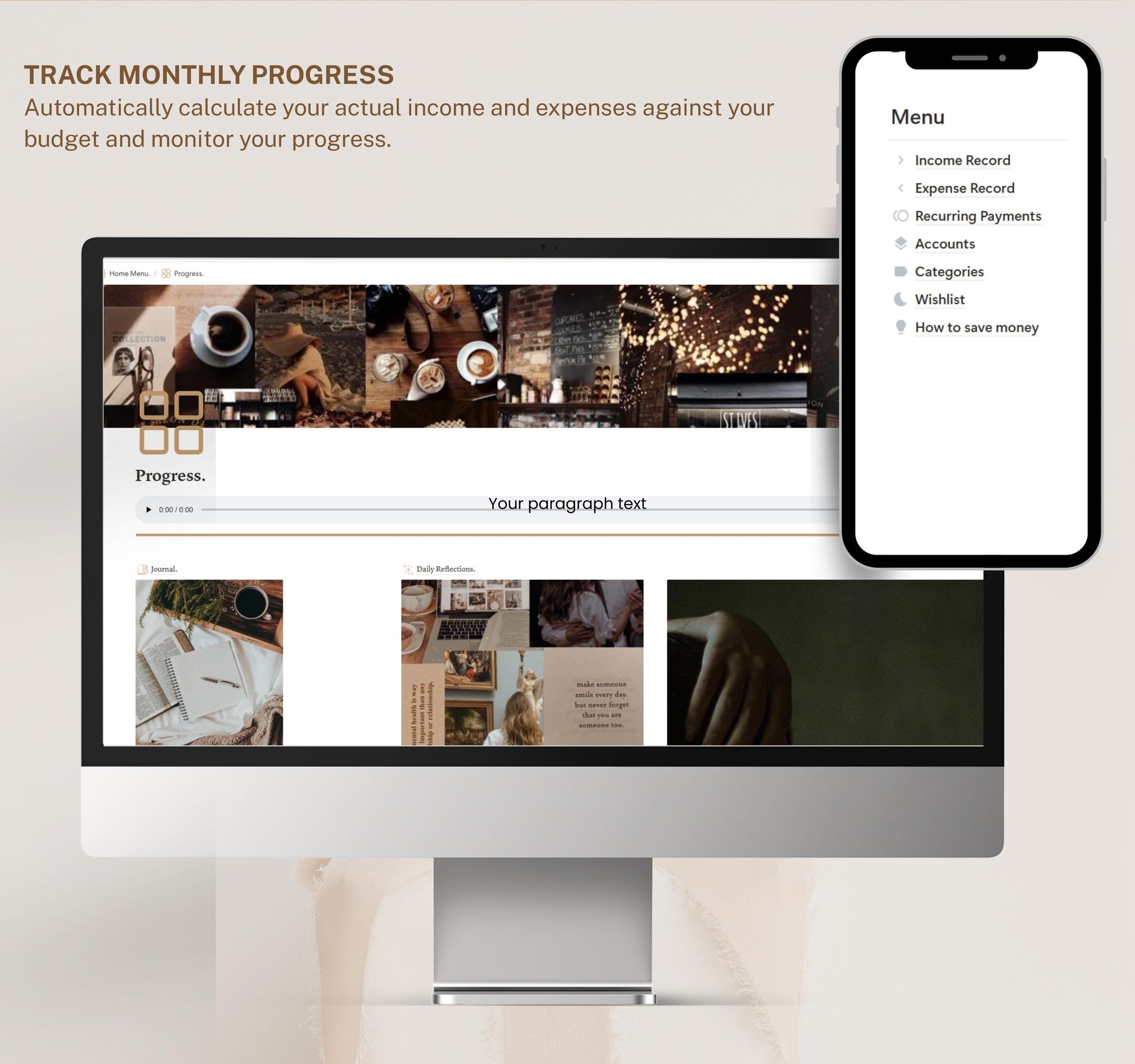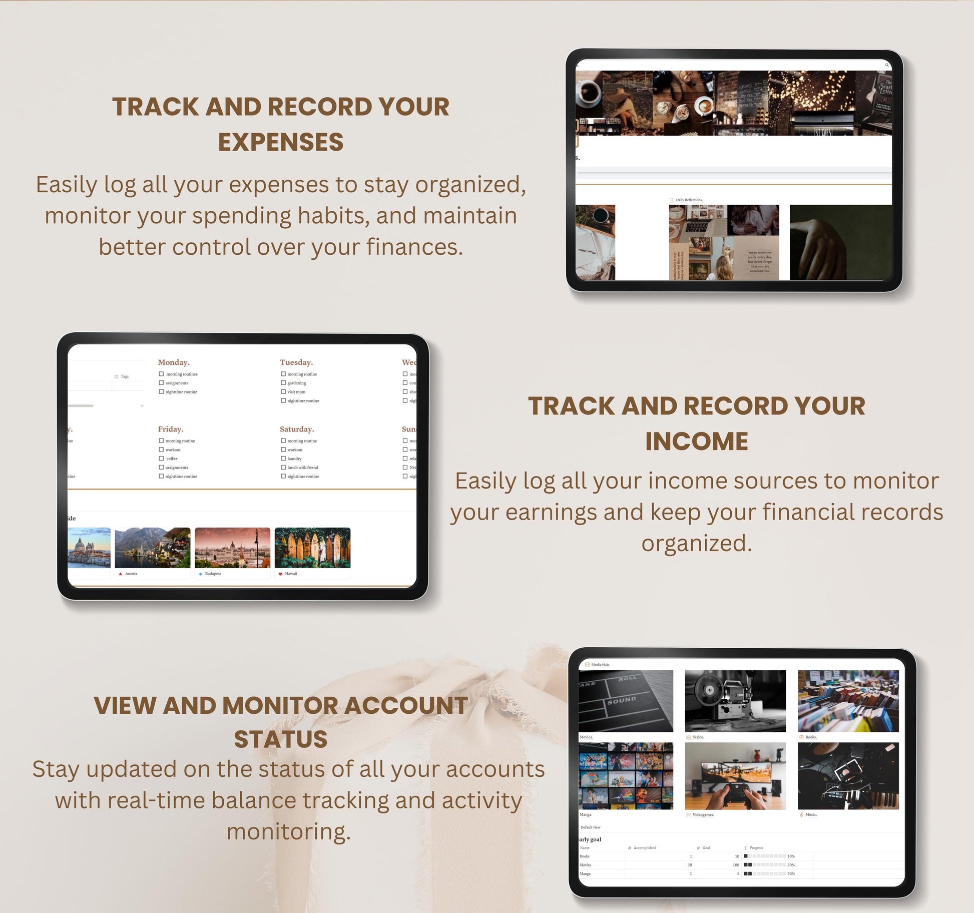 - All-in-One Dashboard: Replace dozens of scattered apps and notebooks with one clean and organized Notion system.